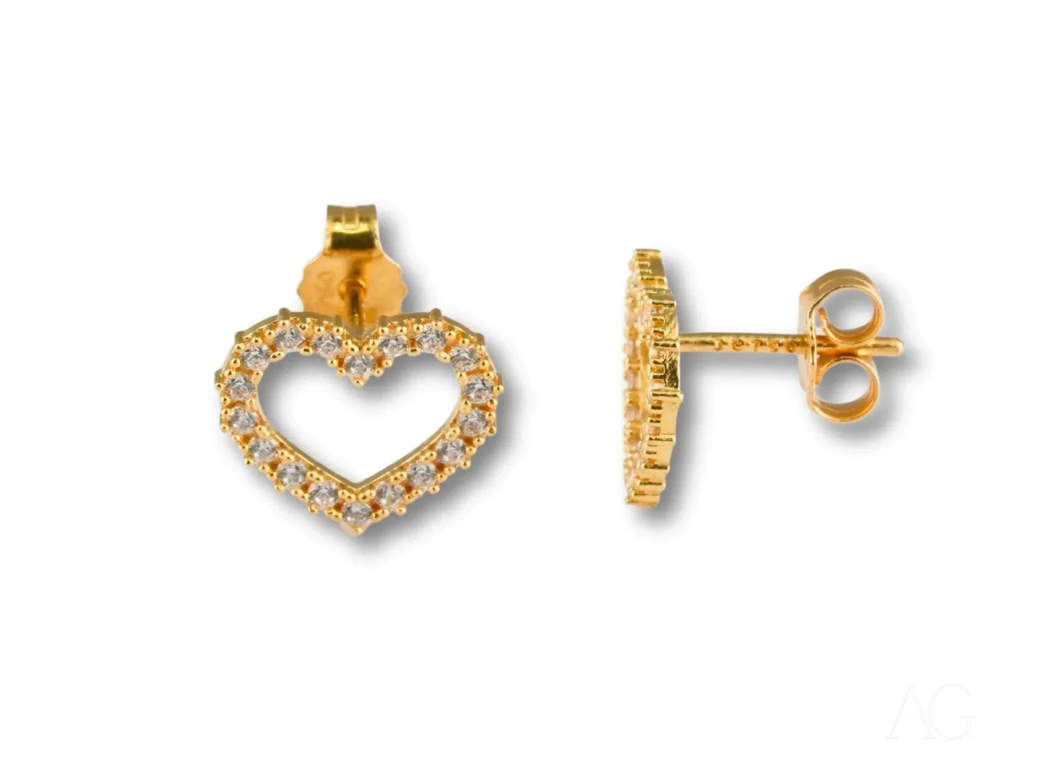 Lustrous Love: 18k Gold CZ Heart Earrings