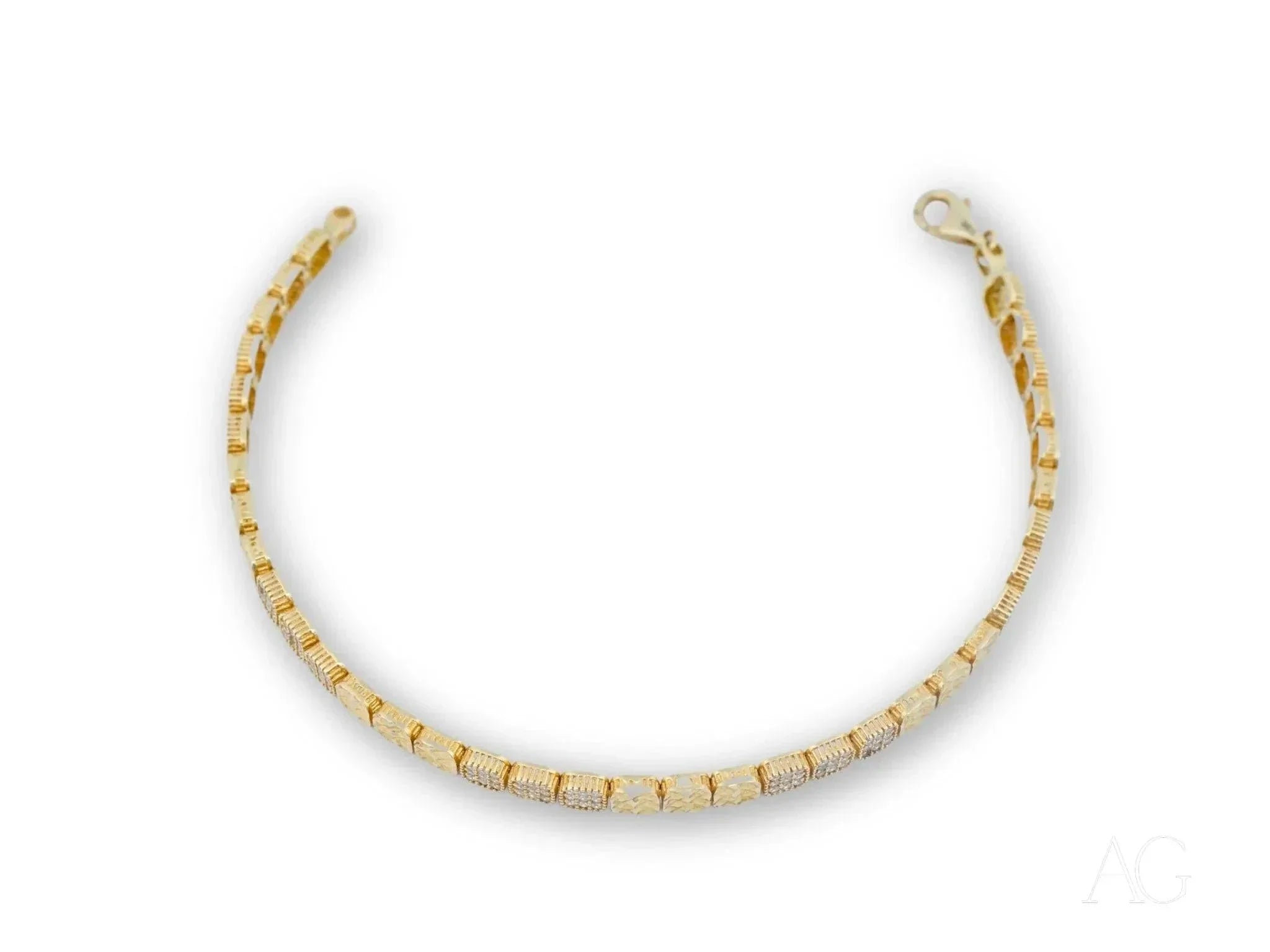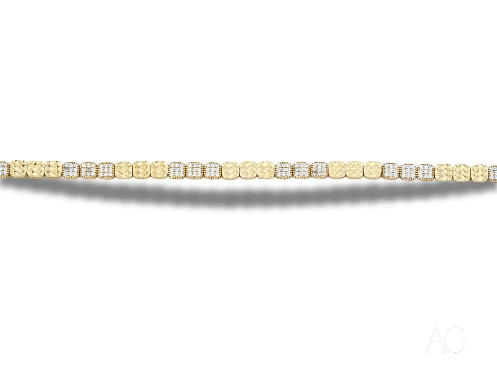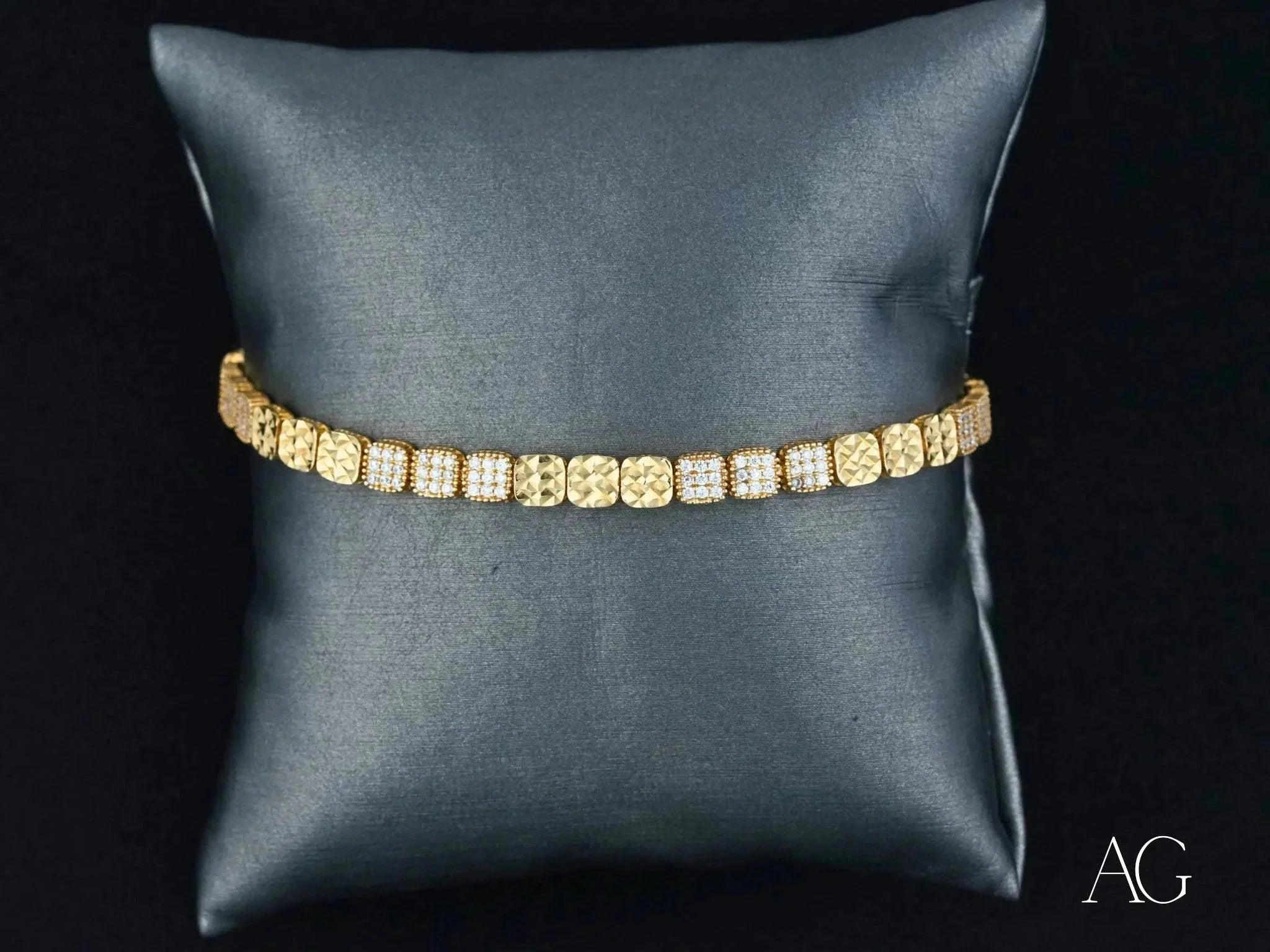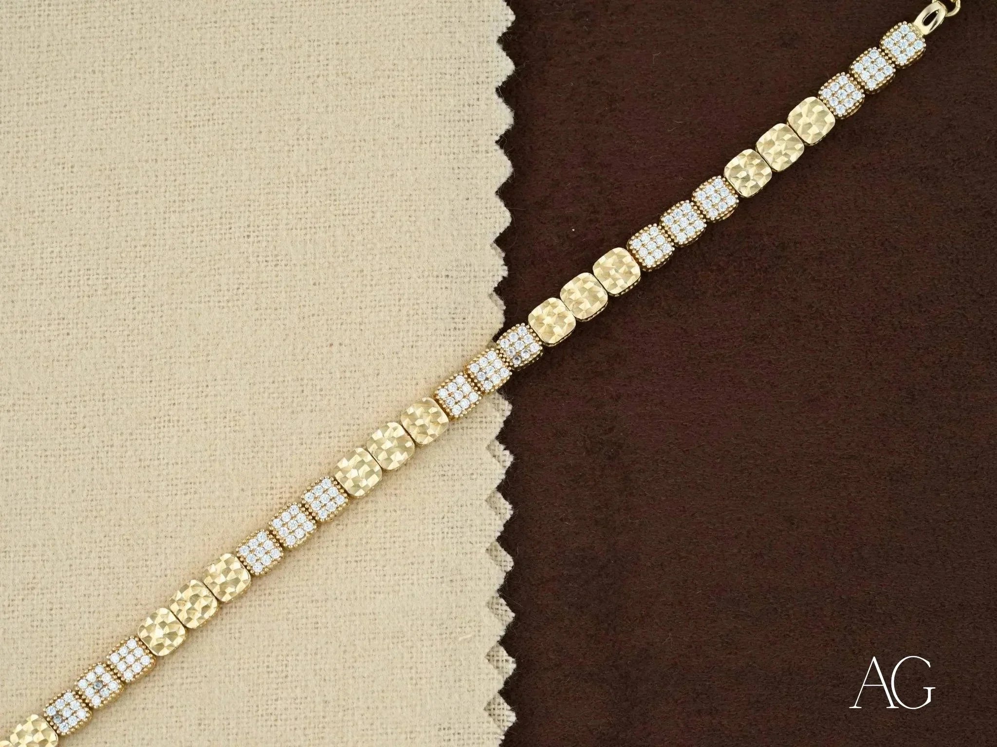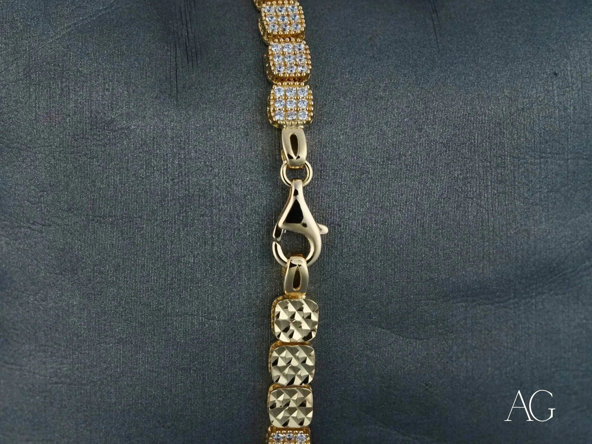 • Design: Captivating alternating rows of polished gold and exquisitely cut cubic zirconia, secured with a robust lobster clasp