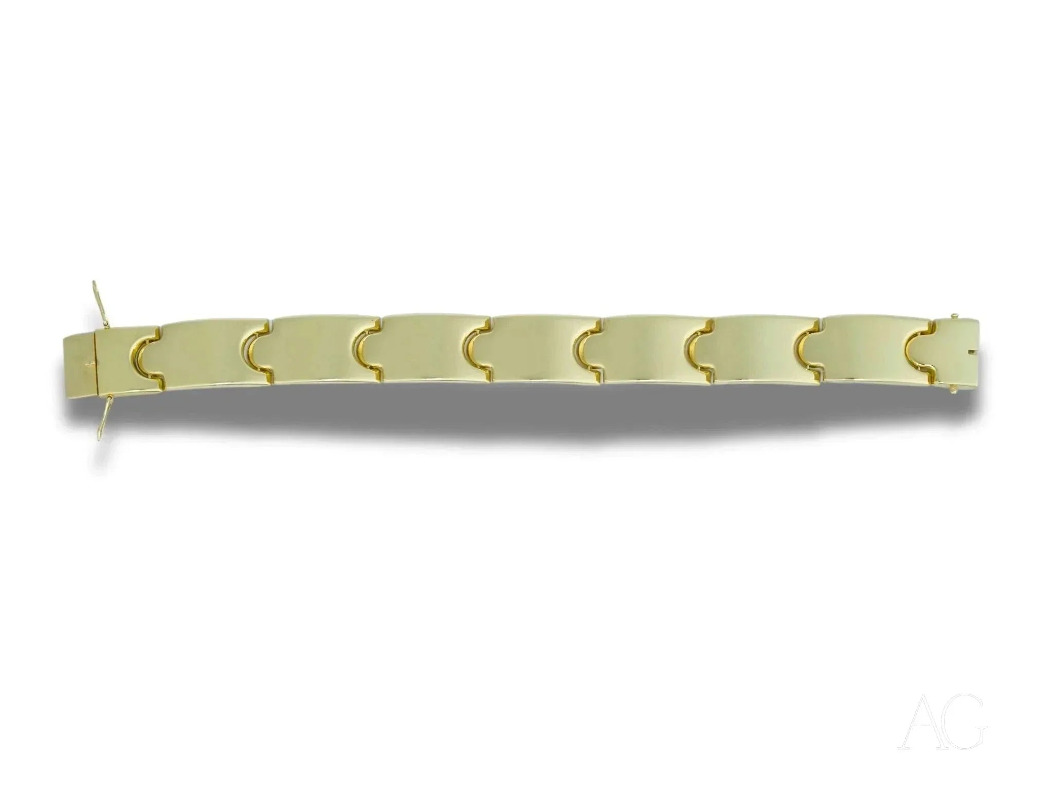 This bracelet weighs an impressive 27.48 grams and is crafted from high-quality 18k solid gold. Its robust construction means it can withstand daily wear without losing its luster. The gold not only offers a radiant shine but also resists tarnishing, ensuring that your bracelet retains its beauty over time. Therefore, investing in this piece means you'll have a durable accessory that remains stunning for years to come.