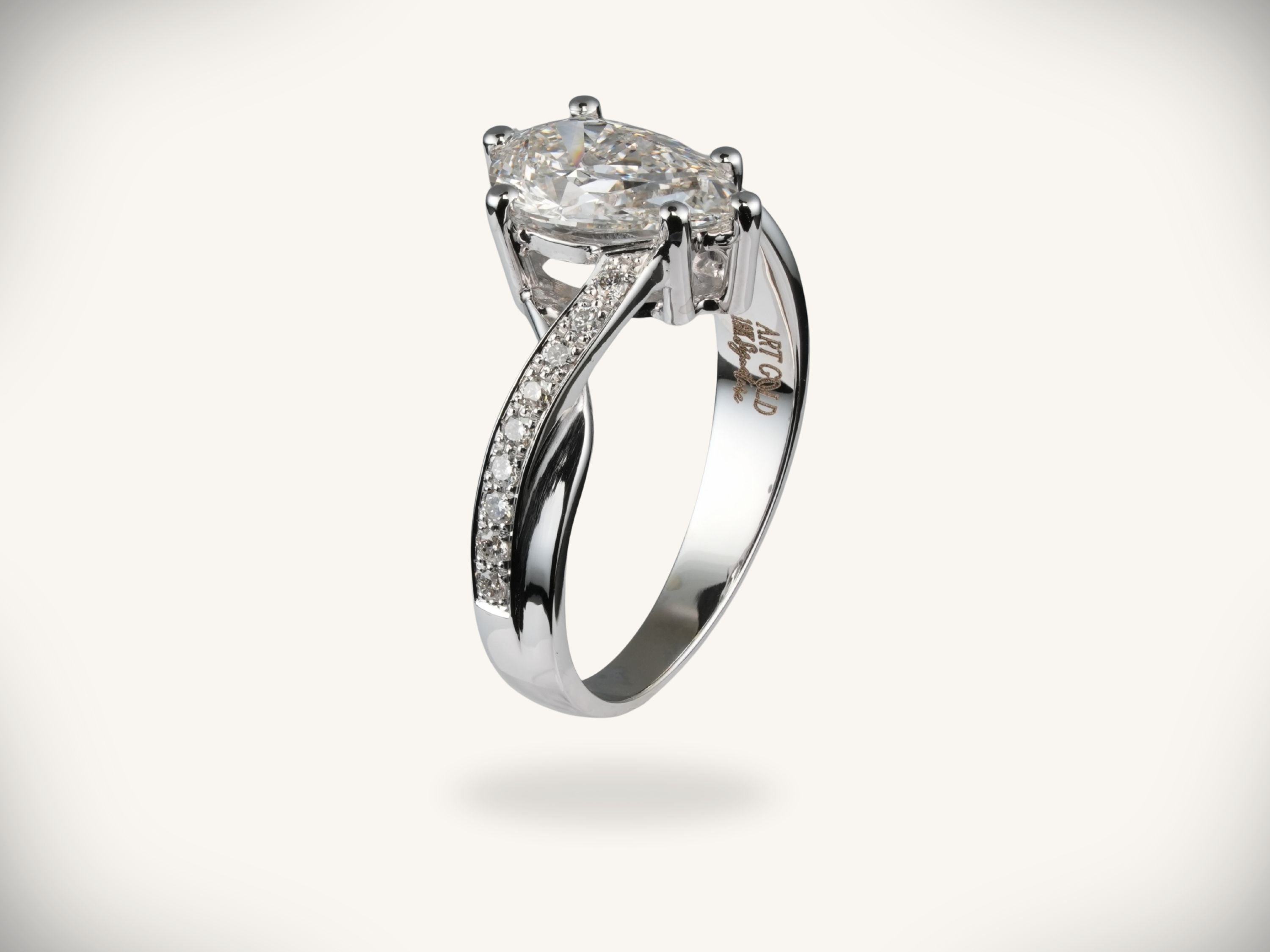• Design: Elevated prong basket with twisted split pavé shank (lab‑grown accent diamonds)