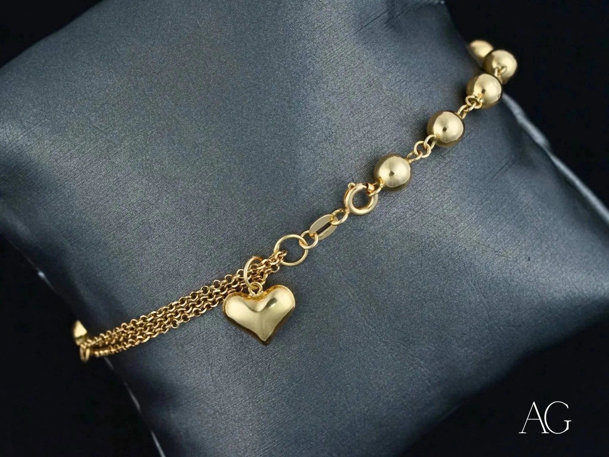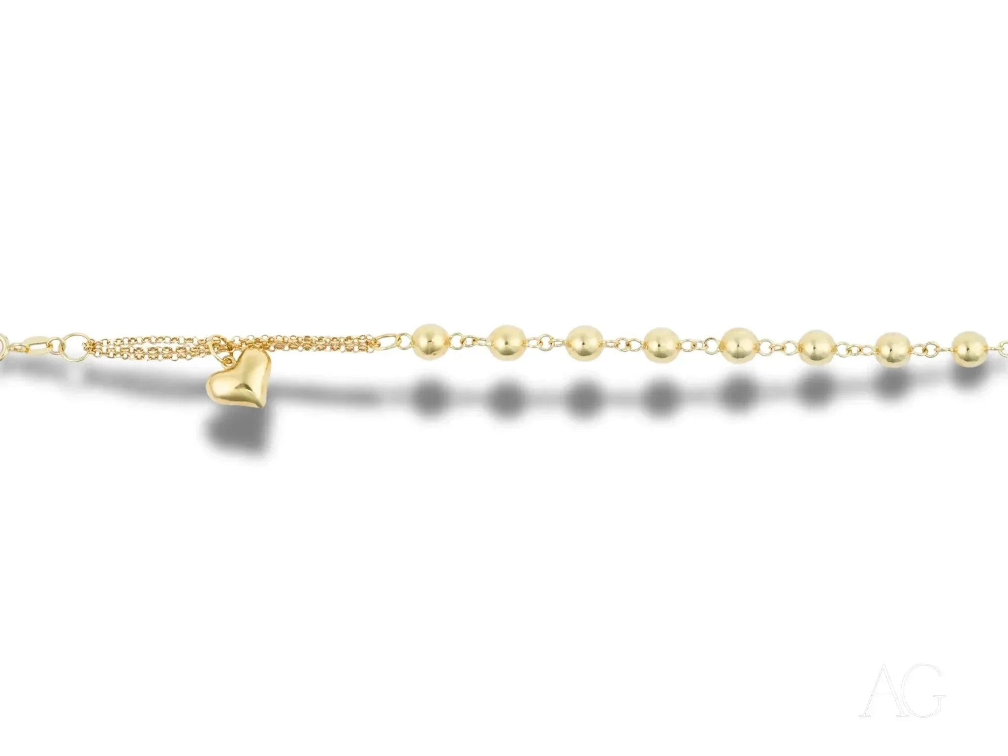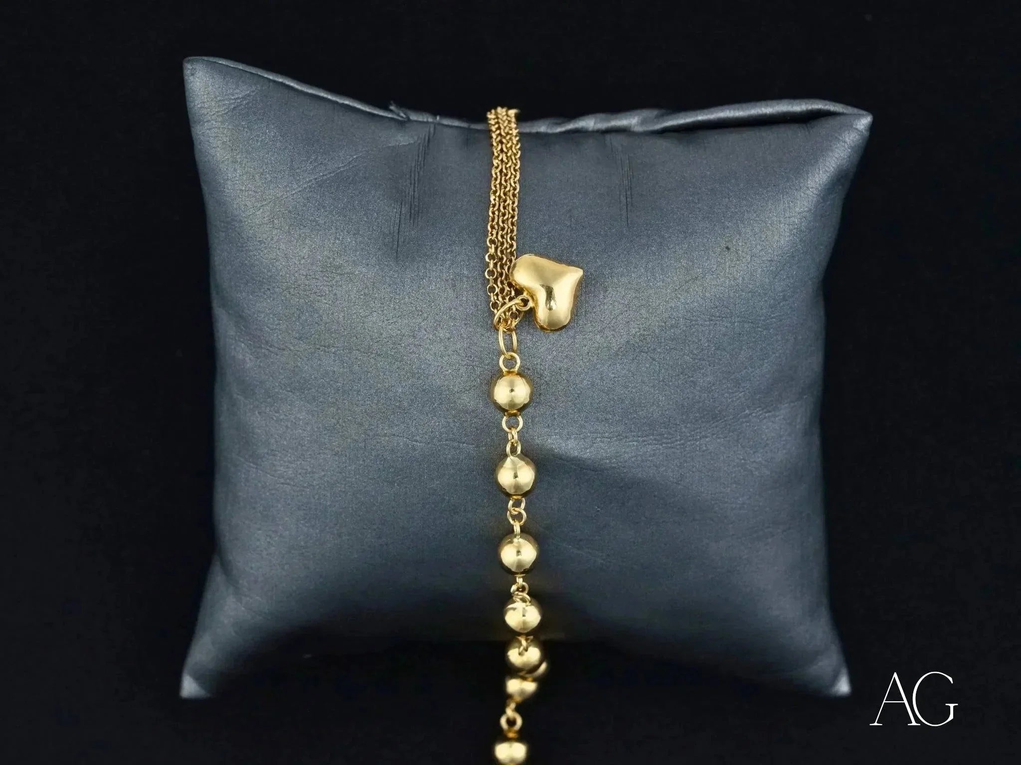 Elegant 18k gold bracelet with heart motif and polished gold beads
