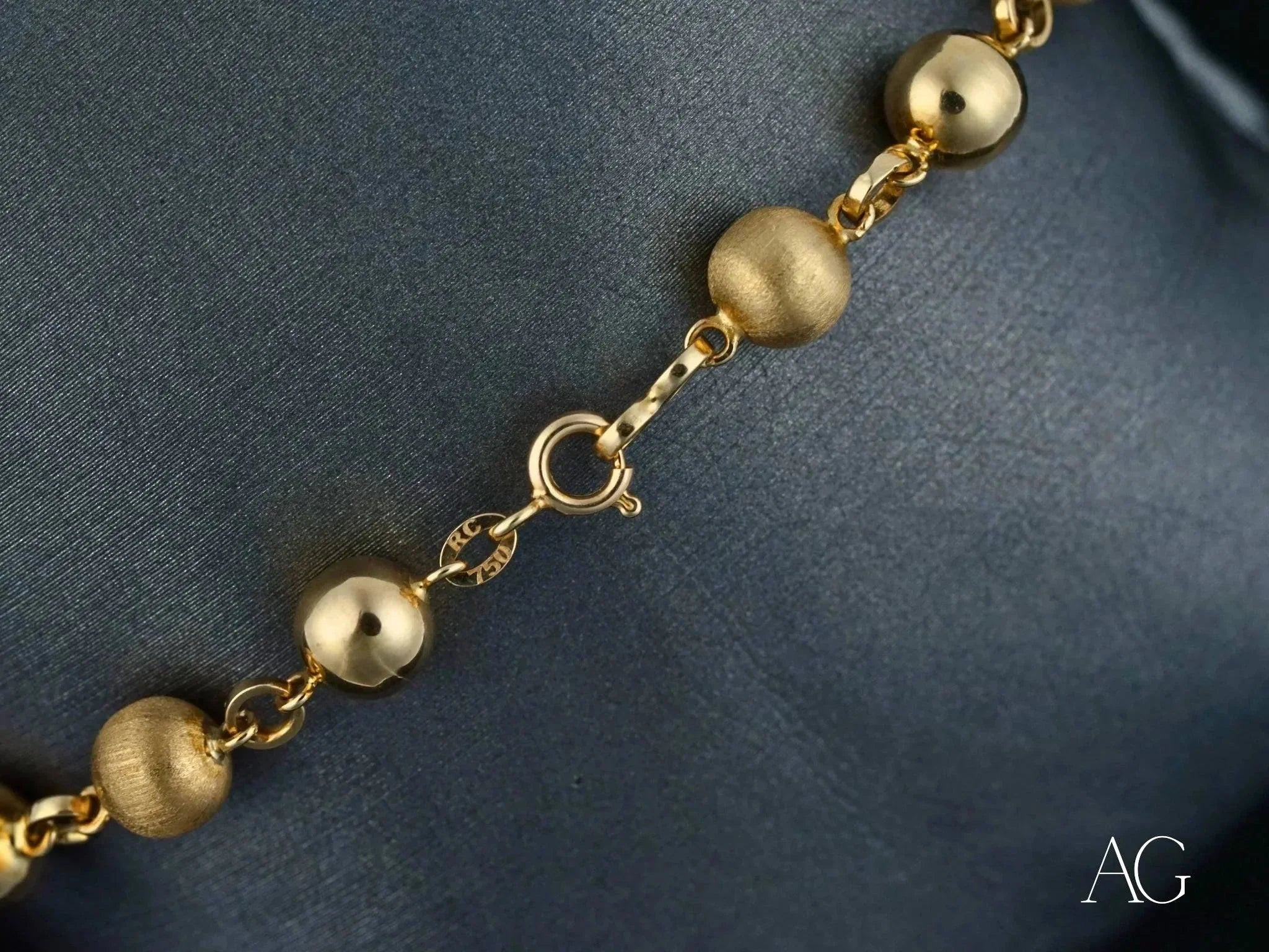 • Design: Captivating interplay of polished and matte-finished gold spheres, secured with a reliable spring ring clasp