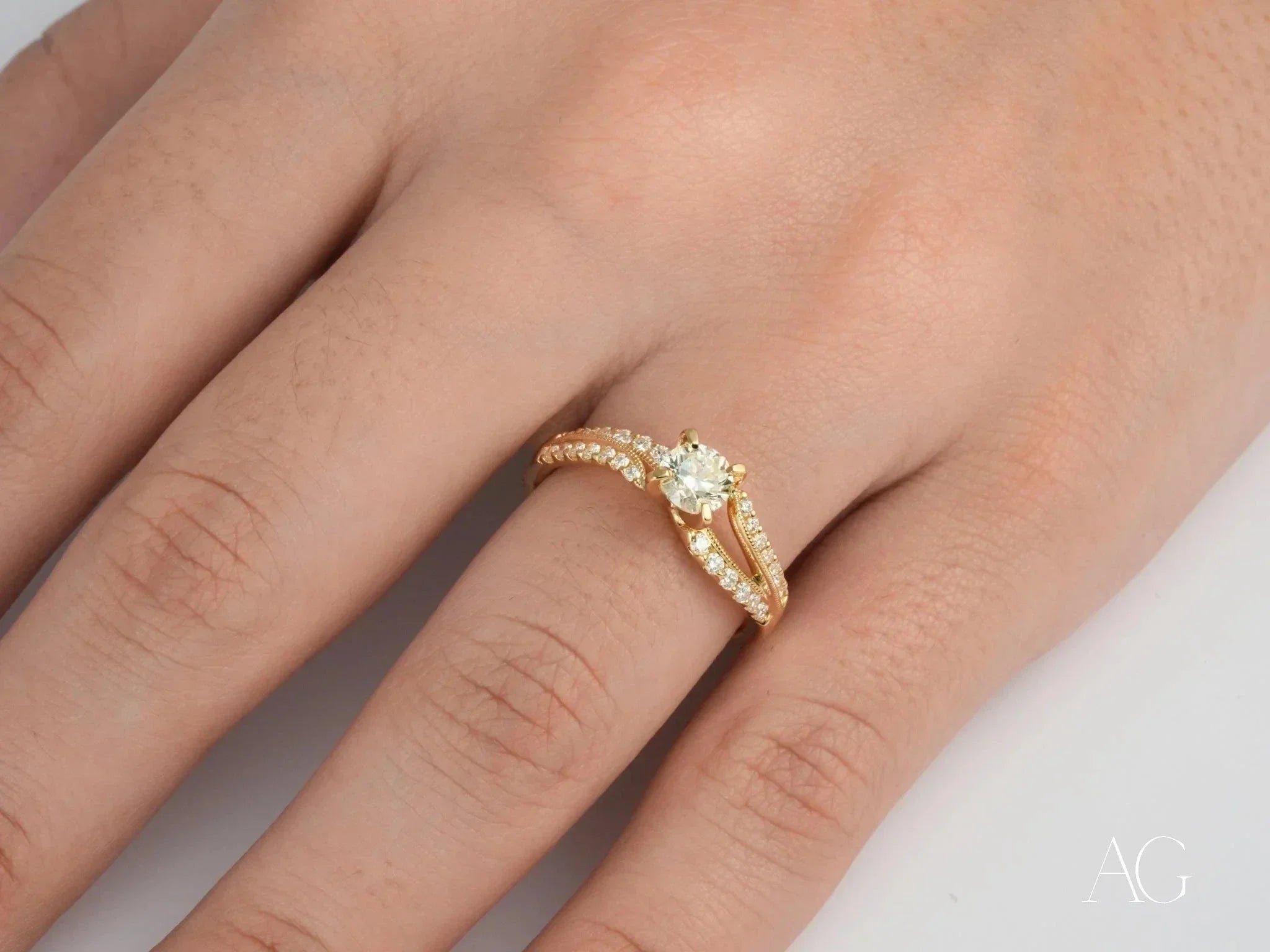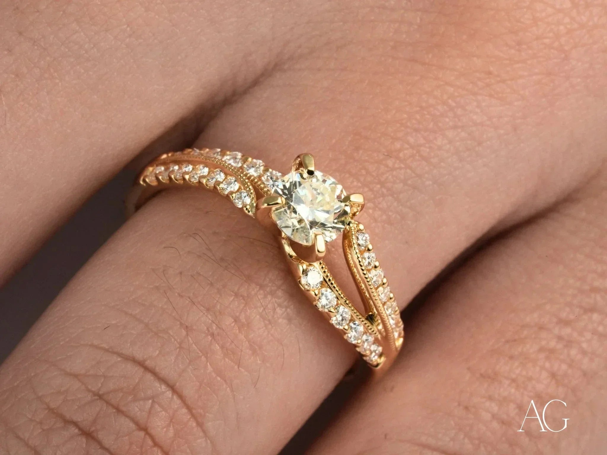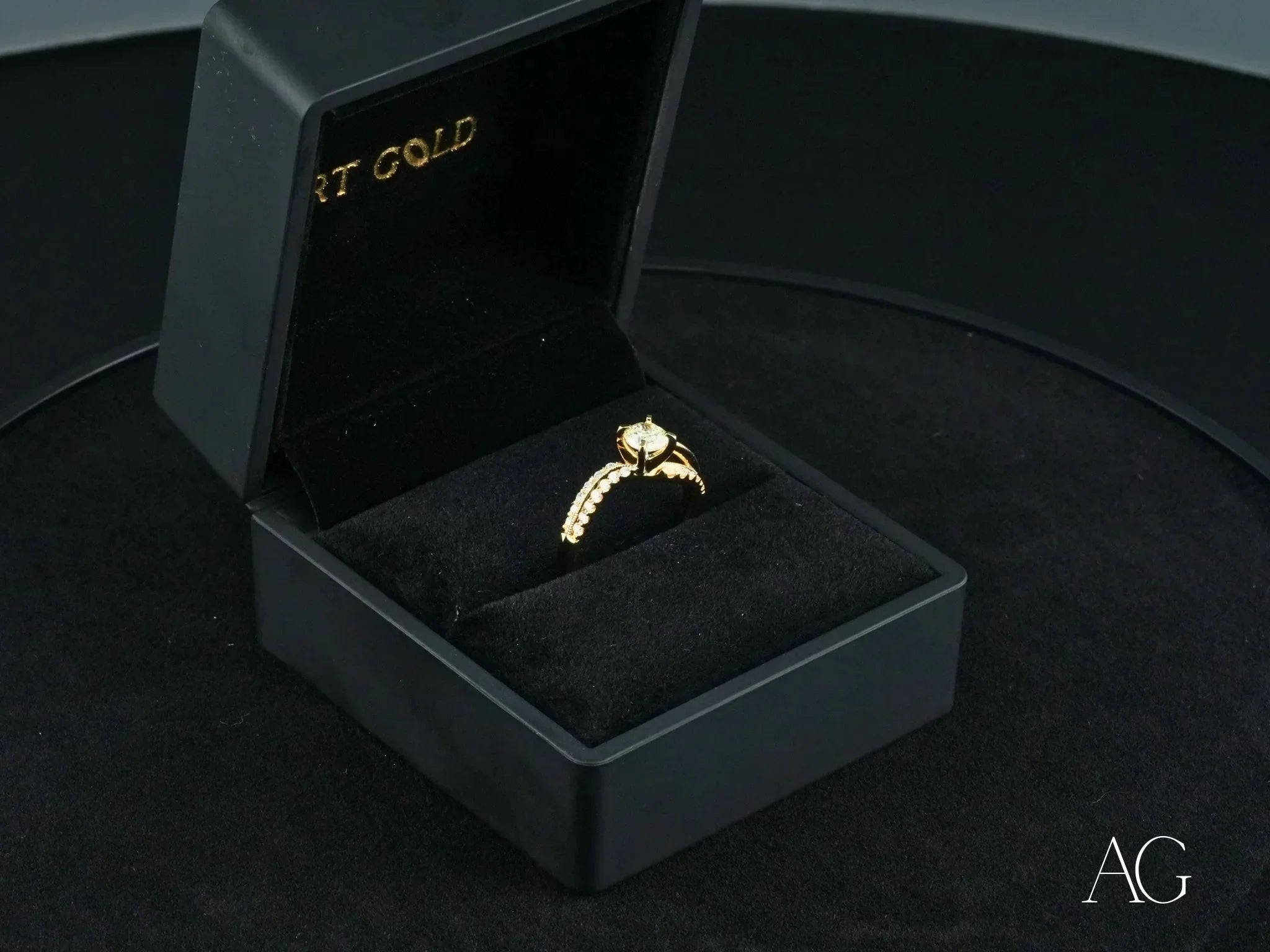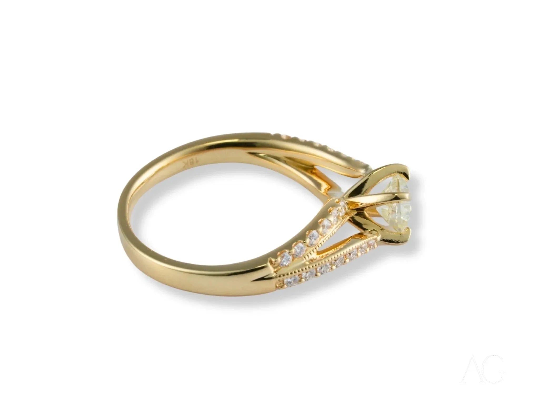 The Radiant Vow: 18k Yellow Gold Engagement Ring with 0.55 Ct Center Diamond and Split Shank is more than just a ring; it's the embodiment of your unique love story. With its timeless design, radiant 18k yellow gold setting, and captivating diamond accents, this ring from Art Gold Jewelry is a testament to your enduring commitment. Begin your forever with a symbol as bright and beautiful as your love.