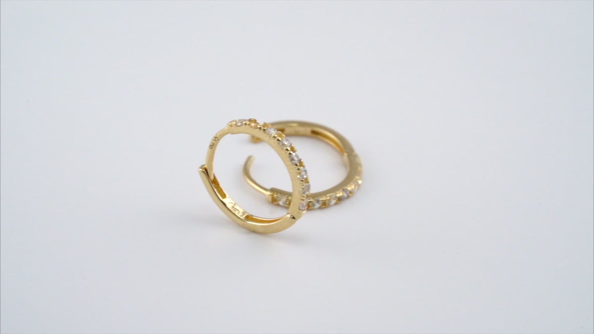 Prepare to be captivated! Add a touch of dazzling elegance and irresistible sparkle to your look with these exquisite 18k Yellow Gold CZ Mini Hoops Earrings. Weighing a delicate 1.8 grams, these meticulously crafted hoops are adorned with brilliant, hand-set cubic zirconia stones that catch the light with every movement. Perfect for elevating your everyday style or adding a touch of glamour to special occasions, these 18k yellow gold mini hoops are a timeless and versatile addition to any jewelry collection. The secure latch-back closure ensures they stay comfortably in place all day and night.