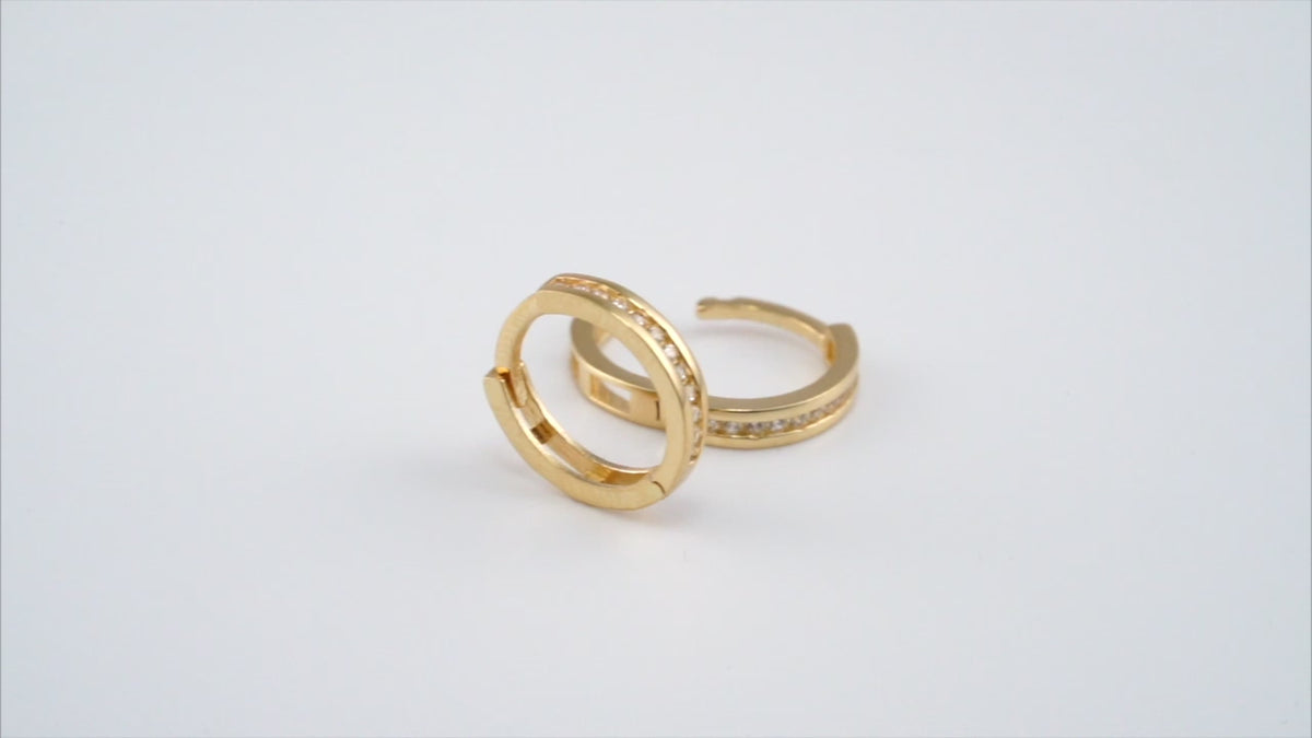 Material: Solid 18k Yellow Gold, ensuring lasting brilliance and value.Design: Mini hoops adorned with dazzling, hand-set cubic zirconia (CZ) for maximum sparkle.Weight: A featherlight 2.4 grams, offering comfortable all-day wear.Clasp Type: Secure latch-back closure for peace of mind and easy handling.Occasion: Perfect for adding a touch of glamour to everyday moments or making a statement at special occasions. These gold CZ mini hoops are the epitome of versatile Art Gold jewelry.Packaging: Arrives in a luxurious Art Gold Box, ready for gifting and safekeeping.Certificate: Includes a Certificate of Authenticity, verifying the quality of your 18k yellow gold and CZ stones.