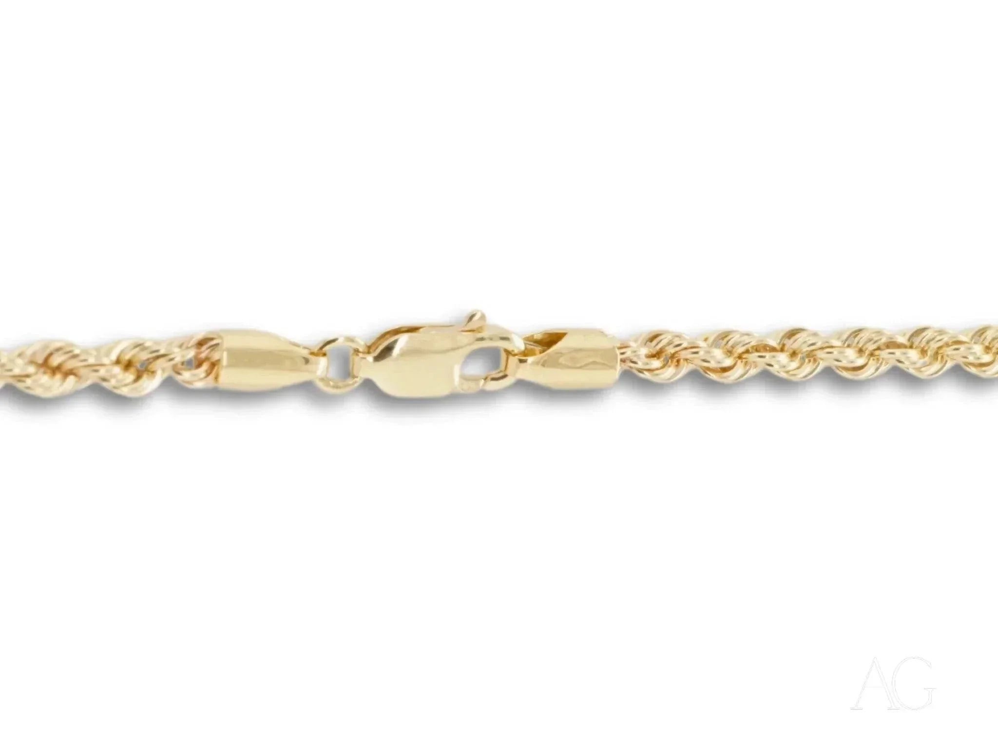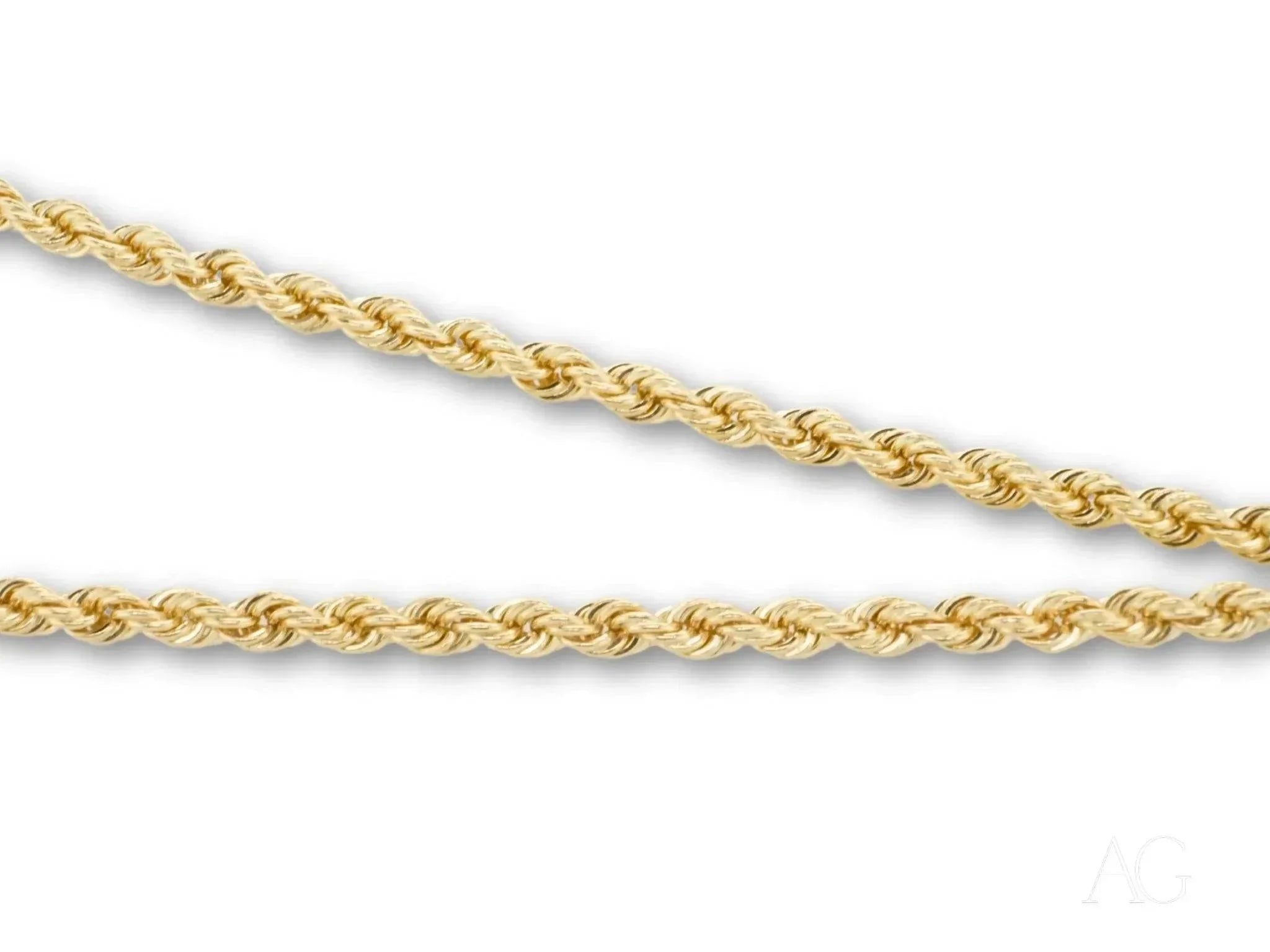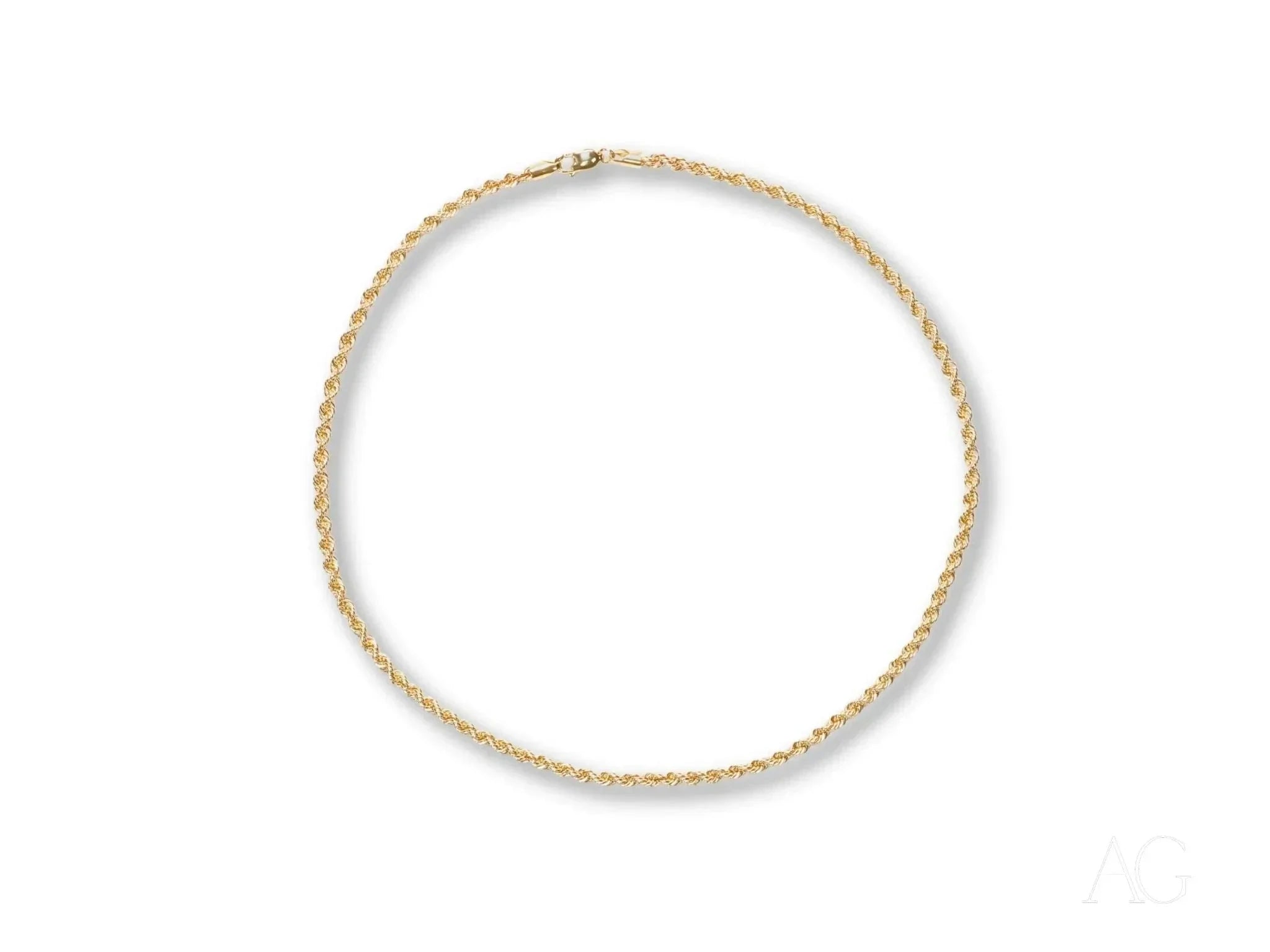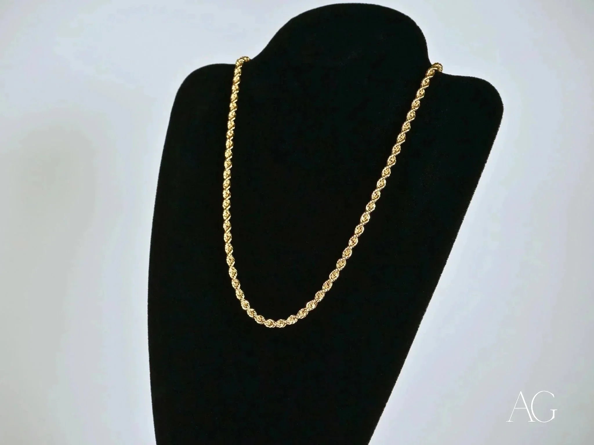 Elegant Rope Chain Design: The intricate rope design, a testament to artisanal craftsmanship, catches the light beautifully, creating a sophisticated shimmer that elevates both casual and formal attire. This solid 14k gold rope chain is more than a necklace; it's a work of art.Durable Lobster Lock: The secure lobster lock closure not only guarantees the safety of your precious necklace but also provides effortless fastening and removal, allowing for seamless transitions between looks.High-Quality 14k Gold: Crafted from solid 14k gold, this necklace promises exceptional durability, resisting tarnish and retaining its radiant luster for generations to come. This investment in quality ensures a piece you'll cherish for a lifetime.