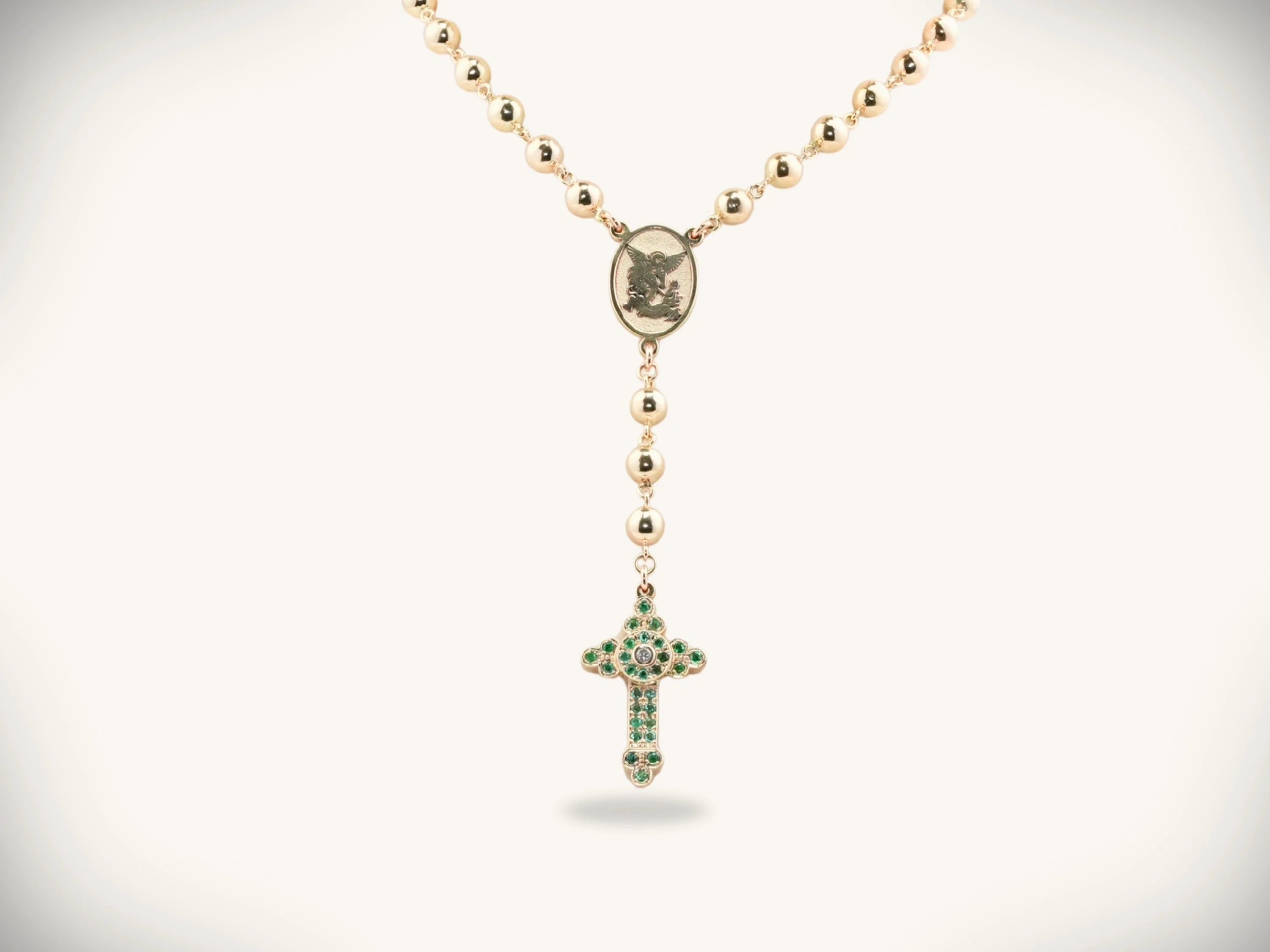 Solid Gold Rosary Necklace – Emerald & Diamond Cross