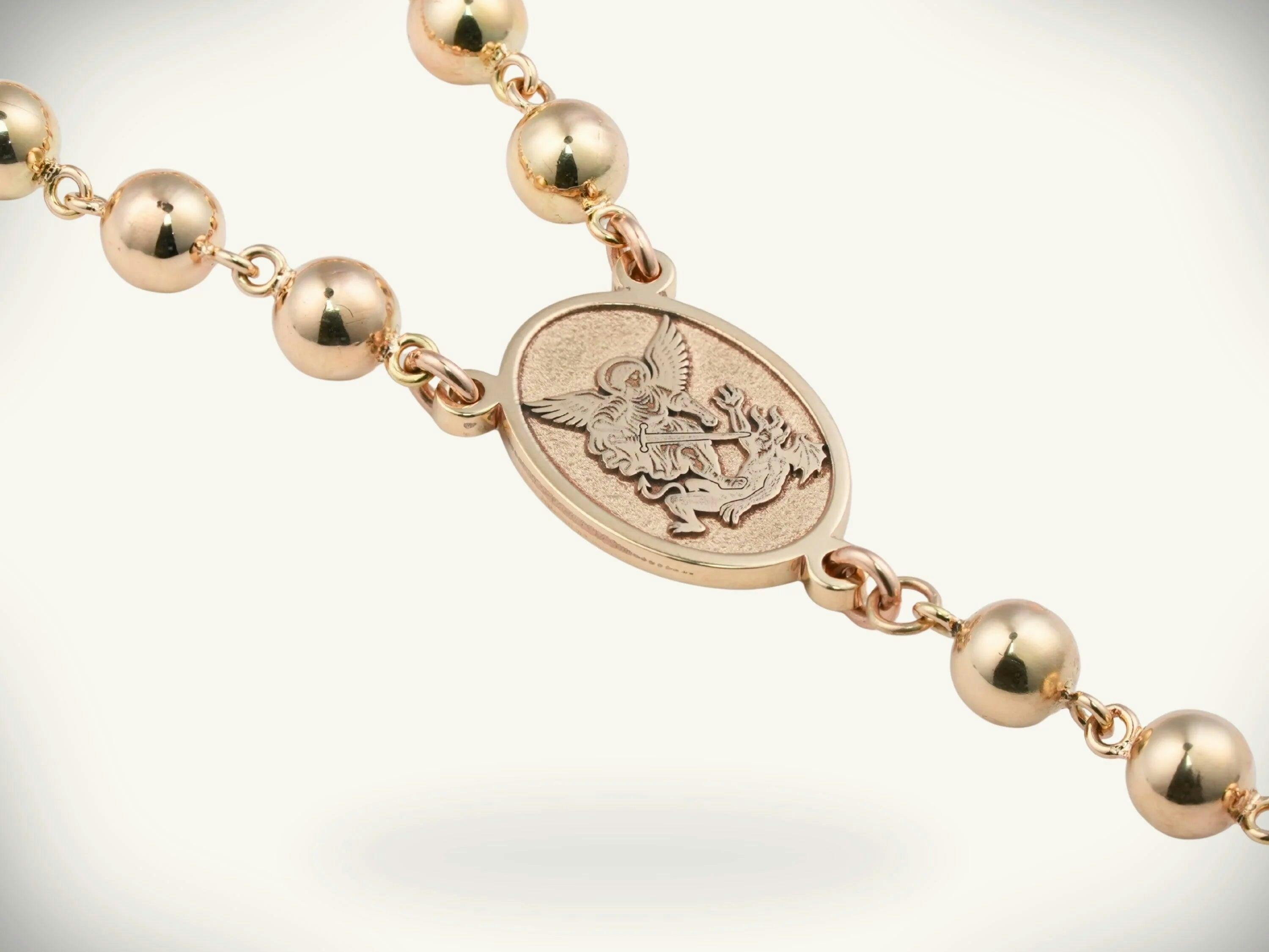 Care: To preserve the dazzling beauty of your ArtGold Jewelry, avoid exposure to harsh chemicals such as chlorine and abrasive cleaners. Store your precious solid gold rosary separately to prevent scratches, and return it to ArtGold for periodic professional inspection and cleaning, ensuring its enduring brilliance.