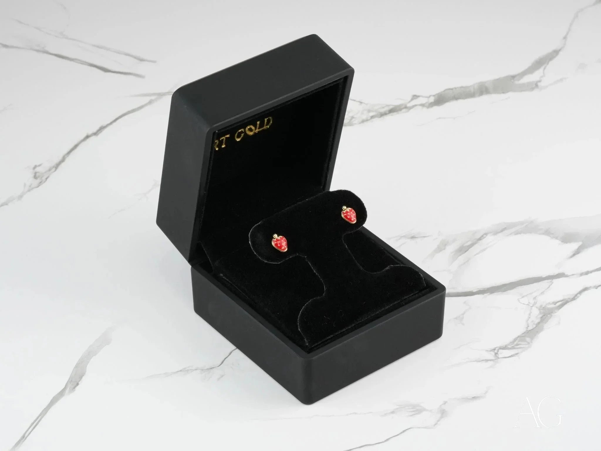 Sweet Strawberry: 18k Gold Kids’ Enamel Stud Earrings