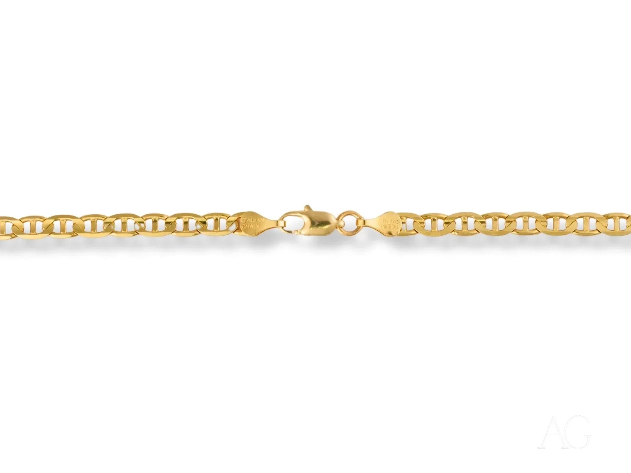 Crafted from solid 18K gold, this timeless strength anchor chain ensures a luminous finish and unmatched durability, promising a lifetime of luxurious wear. The rich gold hue adds a touch of opulence to any ensemble.