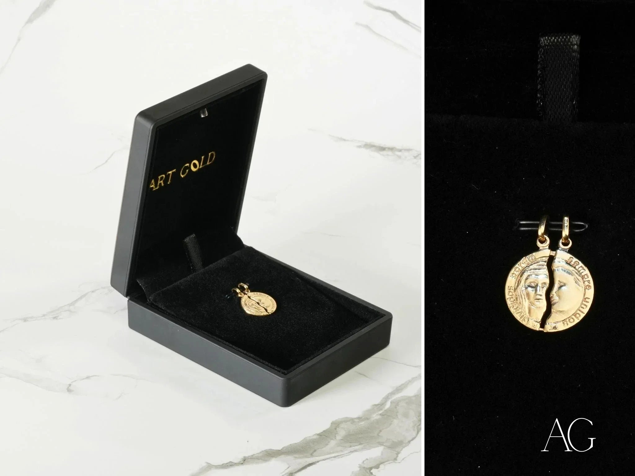 The two faces design of this art gold pendant embodies the complex interplay of unity and duality, symbolizing relationships, emotional balance, and the profound connections we forge throughout life. It's a beautiful tribute to the special bonds we share.